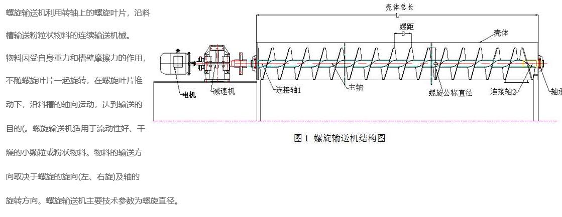 螺旋输送机是在化工、建材、粮食等部门中广泛应用的一种输送设备,主要用于输送粉状、颗粒状和小块状物料。它不适宜输送易变质的、粘性的和易结块的物料。
